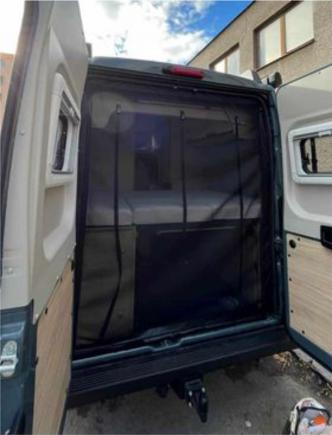 A useful year-round product to ensure comfort in the rear door area of the van/built-in. The mosquito net is attached to the car using a collar with three zips under the rear door seal. Thanks to this, mosquito nets with an insulating wall can be changed depending on the season. On request, we can sew opening openings, pockets, etc. into the mosquito net and insulating wall... We sew to order after ordering, choosing colors and orientation. We have already measured the basic dimensions of regular vans.