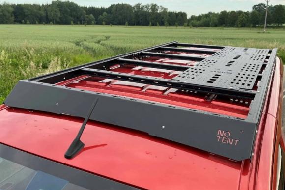 The Roof Rack is a practical and cleanly designed accessory that expands the possibilities for transporting cargo and equipment. It is made entirely of aluminum, ensuring low weight, high durability, and long service life. The crossbars feature a specially engineered shape that makes mounting and transporting roof boxes and other gear easier. The roof rack allows for secure and convenient attachment of a roof tent, sports equipment, boats, bulky cargo, or camping accessories. Thanks to its well-thought-out aerodynamic profile, it minimizes noise while driving, even at higher speeds. Multiple anchor points around the perimeter provide flexible options for securing loads exactly where needed. The construction can be upgraded with transport trays for even greater versatility. Integrated keder rails on both sides of the rack are also included.