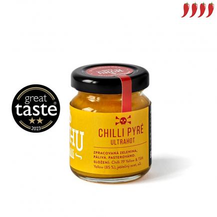 Žluté pyré, vyrobené z chilli papriček 7 Pot Yellow a žluté Morugy, vás okouzlí ananasovou vůní a zasáhne extrémní pálivostí (1 000 000 SHU).