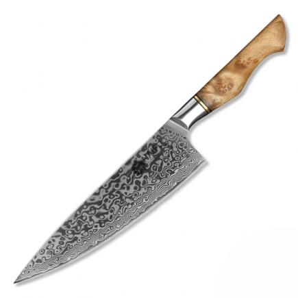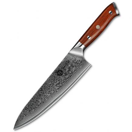 Das 8-Zoll-Kochmesser NAIFU aus Damaststahl mit einer Gesamtlänge von knapp 34 cm ist keineswegs nur für Profi-Köche bestimmt. Seine Vielseitigkeit macht es zu einem wertvollen Werkzeug in jeder Küche. Die Klingenlänge beträgt 21 cm.